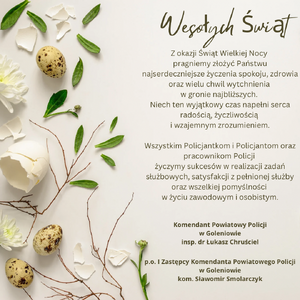 - Życzenia Komendanta Powiatowego Policji w Goleniowie z okazji Świąt Wielkanocnych