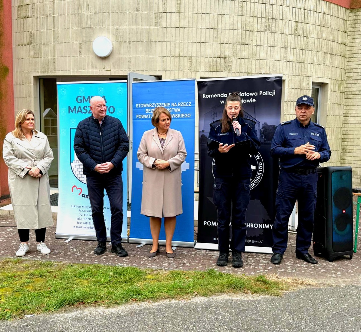 Wczoraj teren Szkoły Podstawowej im. Adama Mickiewicza w Maszewie zamienił się w kolorową, edukacyjną przestrzeń, w której najważniejszymi bohaterami były dzieci. Festyn „Bezpieczna droga do szkoły”, zorganizowany przez Komendę Powiatową Policji w Goleniowie, zgromadził uczniów, nauczycieli, przedstawicieli służb mundurowych oraz lokalnych władz, by wspólnie promować bezpieczne zachowania w ruchu drogowym i codziennym życiu. W wydarzeniu uczestniczyli m.in. Starosta Powiatu Goleniowskiego Pan Tomasz Stanisławski, Kierownik Referatu Organizacyjnego Spraw Obywatelskich i Promocji Pani Dorota Frasunkiewicz oraz Dyrektor Szkoły Podstawowej w Maszewie Pani Anna Kasperek. Swoją obecnością zaszczycili również przedstawiciele Komendy Powiatowej Państwowej Straży Pożarnej w Goleniowie, Ochotniczej Straży Pożarnej w Maszewie oraz Zakładu Karnego w Goleniowie.