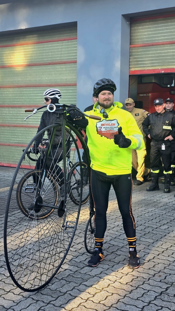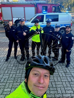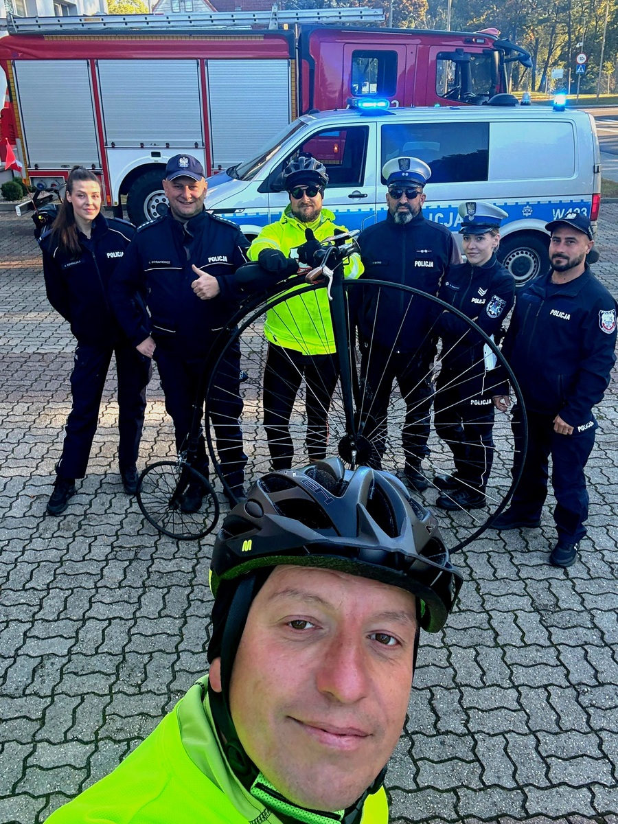 Od ponad trzech tygodni przemierza Polskę na rowerze sprzed ponad 150 lat. Łukasz Jęcz - strażak z Zielonej Góry wyruszył w podróż liczącą prawie 3000 kilometrów, by zebrać środki na leczenie swojej chorej córeczki Emilki. Wczoraj dotarł do Stepnicy, gdzie czekała na niego wyjątkowa eskorta – policjanci z Posterunku Policji w Stepnicy i strażacy z OSP Stepnica zadbali o bezpieczne dotarcie do celu kolejnego etapu. Od tego momentu mundurowi z naszego powiatu czuwają nad jego bezpieczeństwem, aby jego niezwykła misja mogła przebiegać spokojnie i bezpiecznie na naszym terenie. Dziś rozpoczął 26. dzień swojej wyprawy, kierując się w stronę Pyrzyc.