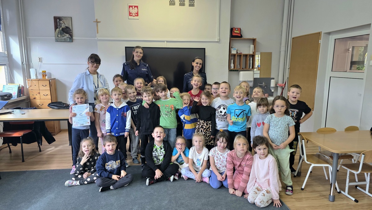 Szczególną uwagę funkcjonariusze zwrócili na rolę elementów odblaskowych, które znacząco zwiększają widoczność pieszych po zmroku. Nie zabrakło rozmów o codziennych sytuacjach, z jakimi dzieci mogą spotkać się w drodze do szkoły lub podczas zabawy na świeżym powietrzu. Policjanci tłumaczyli, jak ważna jest ostrożność i świadomość zagrożeń, a także przypomnieli, że bezpieczeństwo zależy nie tylko od kierowców, ale również od pieszych.