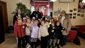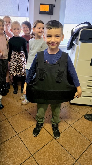 Całe spotkanie przebiegło w ciepłej i przyjaznej atmosferze. Dzieci z entuzjazmem słuchały opowieści policjantów, chętnie uczestniczyły w pokazach i nie szczędziły pytań. Na zakończenie wizyty przedszkolaki podziękowały funkcjonariuszom za gościnność, wręczając własnoręcznie przygotowany rysunek.