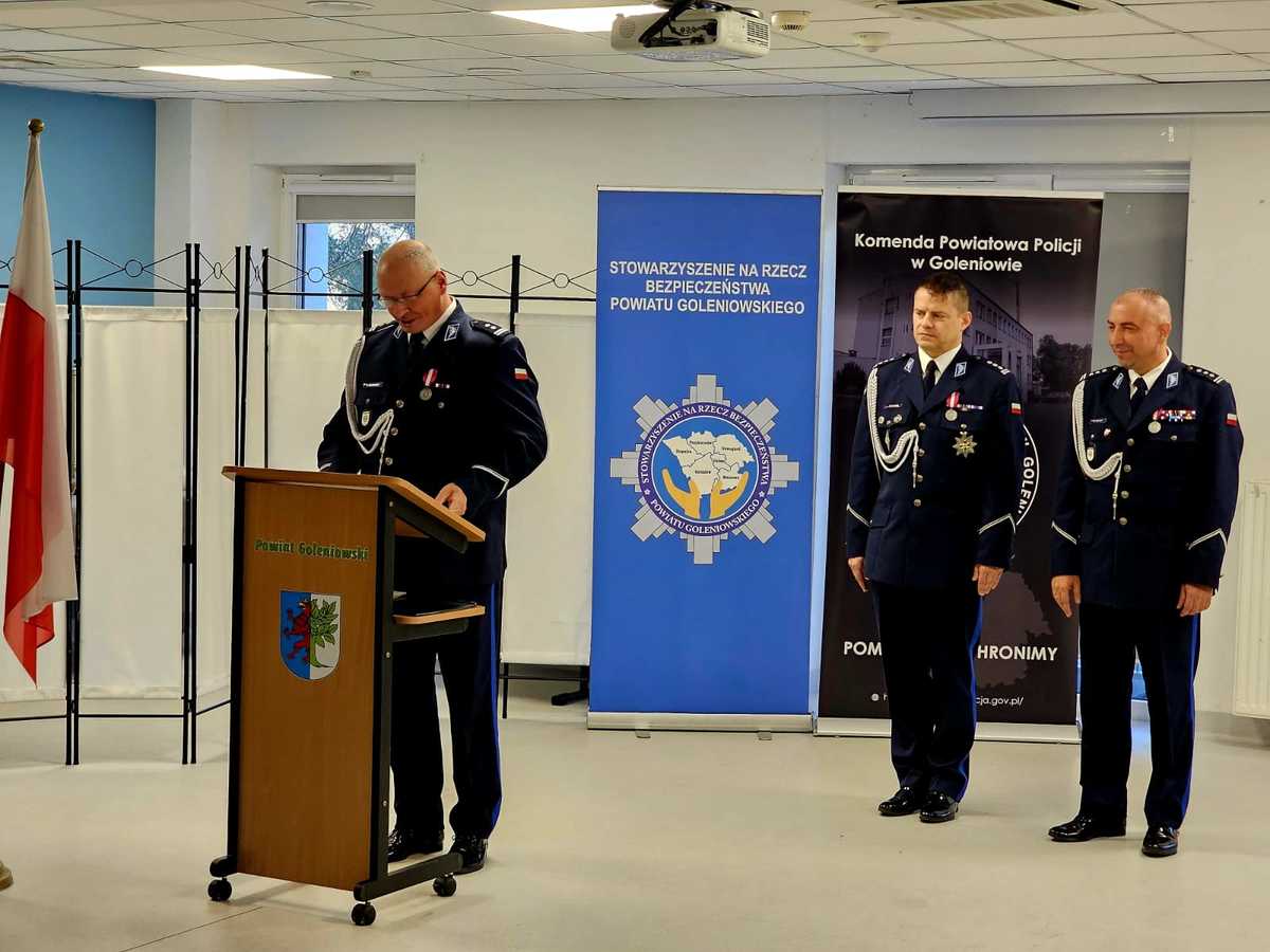 Żegnający się z goleniowską jednostką mł. insp. Sławomir Daszkiewicz podziękował wszystkim tym, z którymi miał przyjemność współpracować. Podziękowania złożył wszystkim samorządowcom za zrozumienie i wsparcie w przezwyciężaniu problemów. Podziękowania i słowa uznania za trud i pracę Komendant przekazał wszystkim policjantkom, policjantom i pracownikom Policji. Z kolei insp. Łukasz Chruściel mówił, że stanowisko Komendanta Powiatowego Policji w Goleniowie traktuje jako duże wyróżnienie i wyzywanie. Zapowiedział, że priorytetem dla niego będzie zaufanie społeczeństwa i że dokona wszelkich starań, aby zwiększyć poczucie bezpieczeństwa mieszkańców powiatu goleniowskiego. Zapewnił też, że dalsza dobra praca funkcjonariuszy i pracowników Komendy, dobre współdziałanie z innymi służbami i instytucjami oraz współpraca ze społeczeństwem, pozwoli na uzyskanie jeszcze lepszych wyników w procesie zapobiegania przestępstwom oraz ich wykrywaniu.