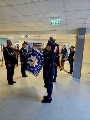 Uroczystość zakończyła się odprowadzeniem sztandaru Komendy Powiatowej Policji w Goleniowie i złożeniem meldunku I Zastępcy Komendanta Wojewódzkiego Policji w Szczecinie o zakończeniu zbiórki.