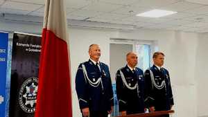 Następnie mł. insp. Sławomir Daszkiewicz złożył I Zastępcy Komendanta Wojewódzkiego Policji w Szczecinie meldunek o zdaniu obowiązków służbowych na stanowisku Komendanta Powiatowego Policji w Goleniowie. Po nim meldunek o objęciu obowiązków służbowych na stanowisku służbowym Komendanta Powiatowego Policji w Goleniowie złożył insp. dr.Łukasz Chruściel. I Zastępca Komendanta Wojewódzkiego Policji w Szczecinie insp. Robert Sielski zwracając się do mł. insp. Sławomira Daszkiewicza podziękował mu za lata służby goleniowskiej Policji, pracy i oddania na rzecz lokalnego społeczeństwa.