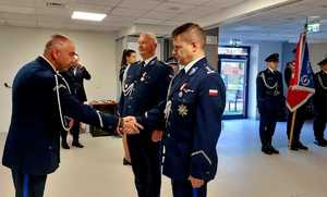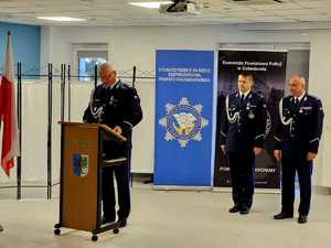 W dalszej części prowadzący uroczystość przedstawił sylwetkę i przebieg służby insp. dr. Łukasza Chruściela.