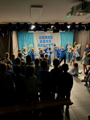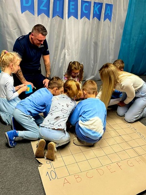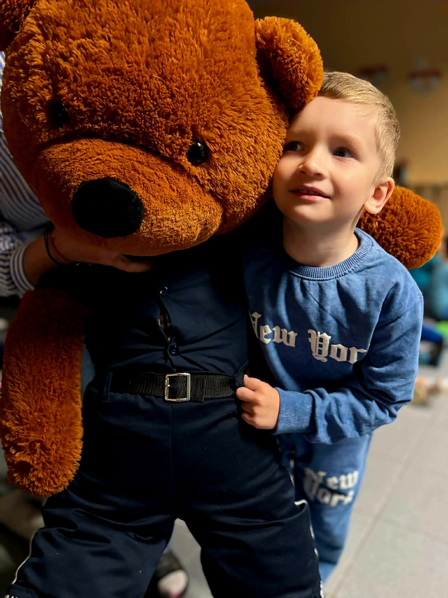 Po części edukacyjnej na przedszkolaków czekały przygotowane zadania i wyzwania grupowe. Ćwiczenia te nie tylko utrwalały wiedzę, ale również sprawiały mnóstwo radości i sprzyjały współpracy. To jednak nie wszystko – pojawił się także wyjątkowy gość, ogromny pluszowy miś, który wprowadził jeszcze więcej uśmiechów i pozytywnych emocji.