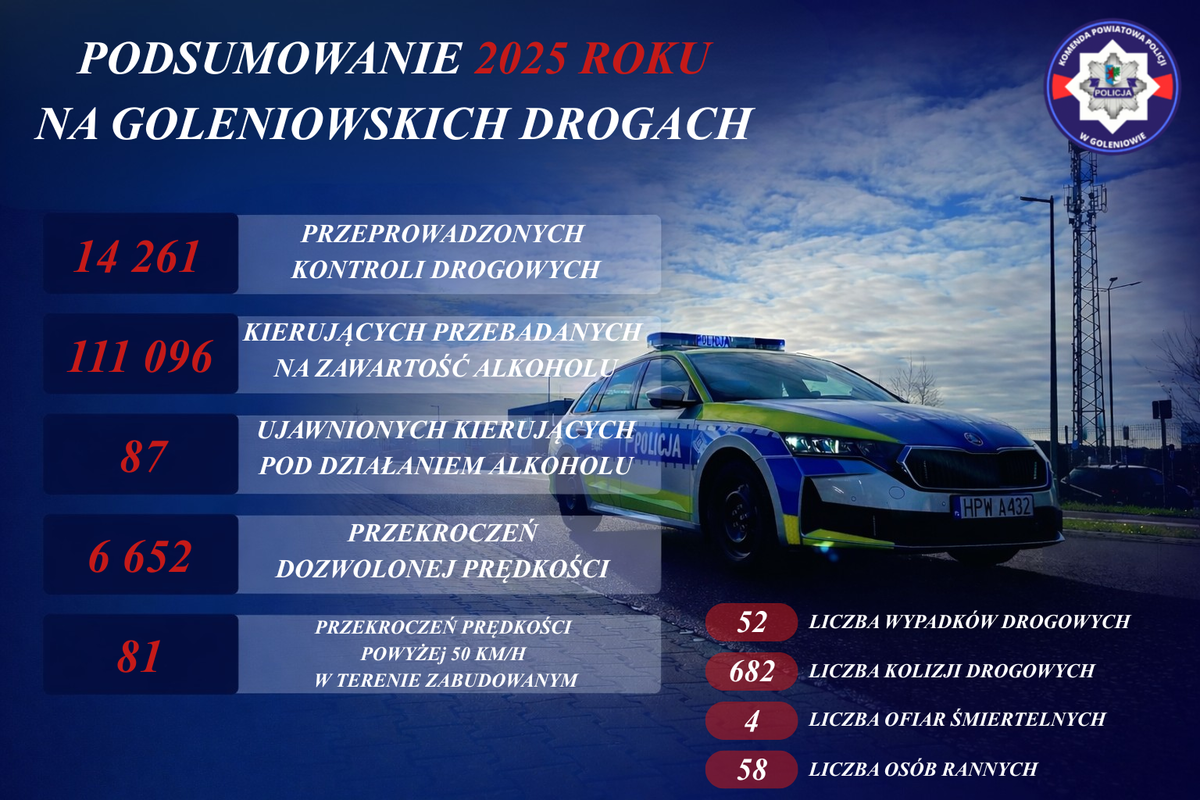 Rok 2025 był czasem intensywnej służby policjantów Wydziału Ruchu Drogowego KPP w Goleniowie. Funkcjonariusze każdego dnia czuwali nad bezpieczeństwem uczestników ruchu drogowego, realizując kontrole, obsługując zdarzenia oraz prowadząc działania profilaktyczne na terenie całego powiatu.