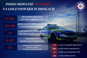 Podsumowując, 2025 rok to czas intensywnej i konsekwentnej pracy policjantów Wydziału Ruchu Drogowego KPP w Goleniowie. Funkcjonariusze każdego dnia, przez cały rok, dbali o bezpieczeństwo mieszkańców powiatu goleniowskiego reagując na wykroczenia, eliminując zagrożenia i przypominając, że bezpieczeństwo na drodze zależy od nas wszystkich.