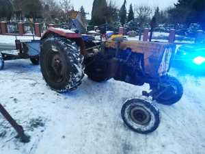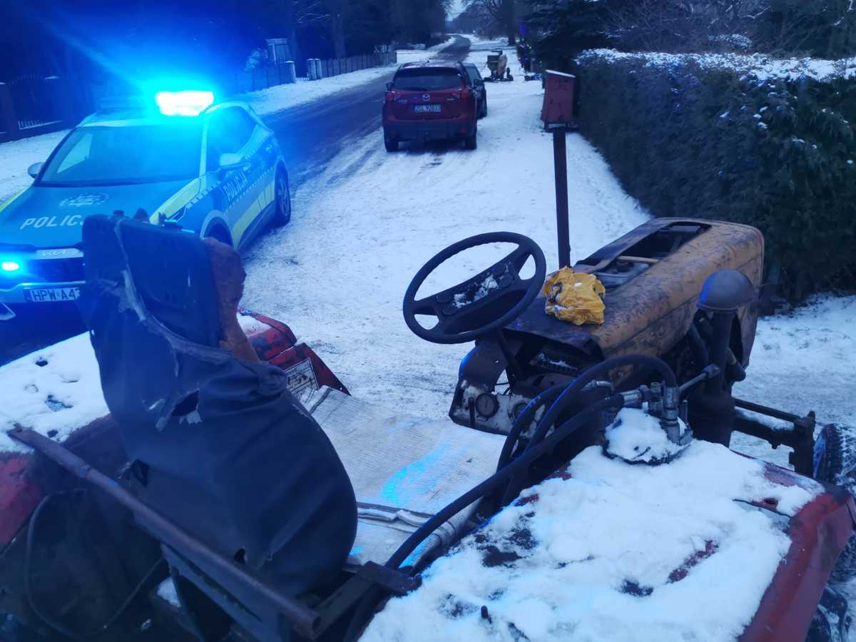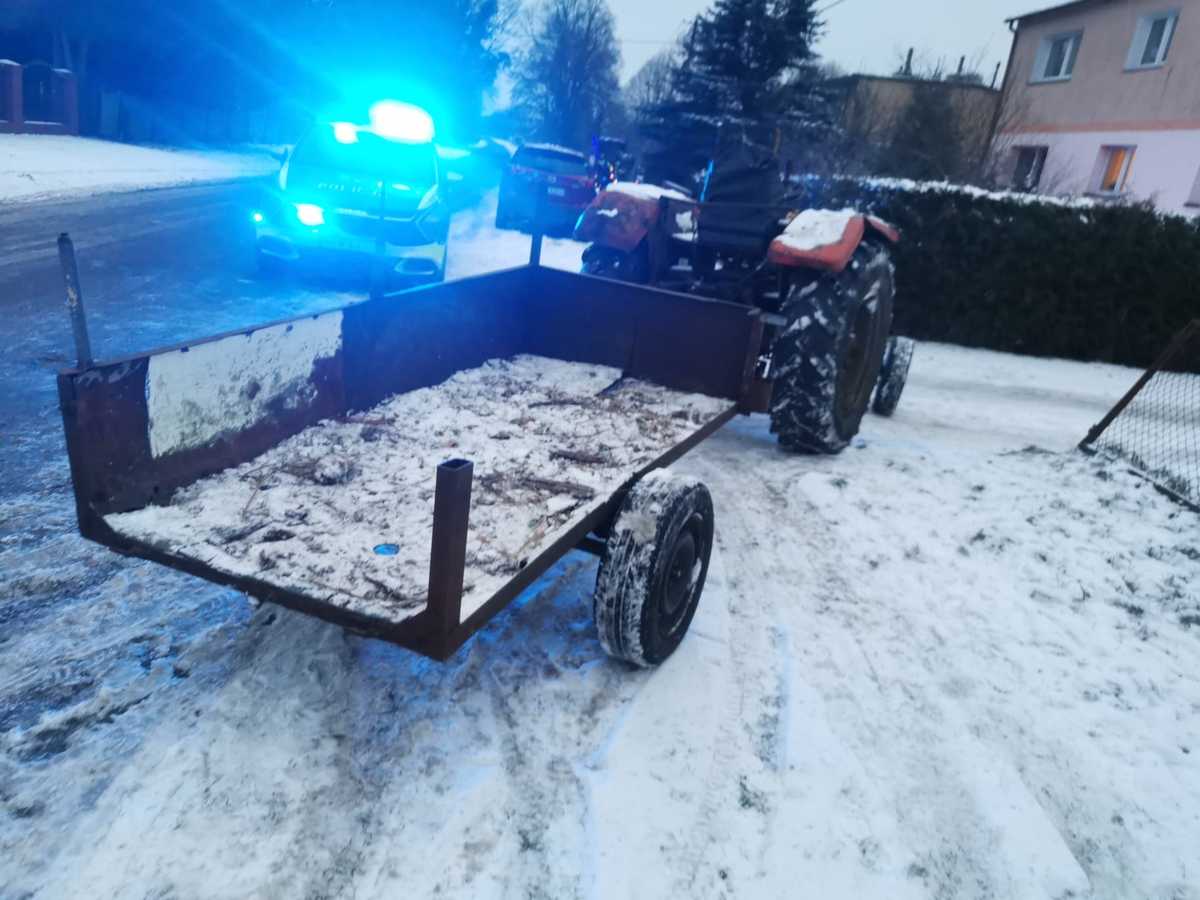 Przeprowadzone badanie trzeźwości tylko potwierdziło przypuszczenia zarówno zgłaszającego, jak i funkcjonariuszy. Urządzenie wykazało 1,39 mg/l alkoholu w wydychanym powietrzu, co odpowiada blisko 3 promilom alkoholu w organizmie. To jednak nie był koniec problemów kierującego. Mężczyzna posiadał aktywny zakaz prowadzenia pojazdów mechanicznych a ciągnik, którym się poruszał, nie był zarejestrowany, nie posiadał obowiązkowego ubezpieczenia OC ani numeru VIN. Te same nieprawidłowości dotyczyły również przyczepy z którą jechał.