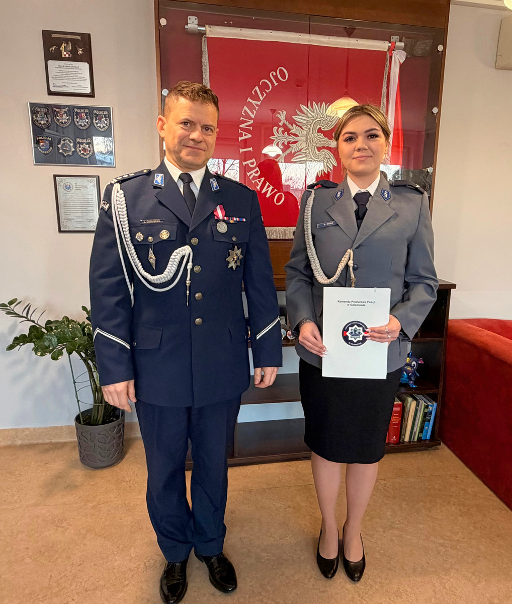 Dziś Komendant Powiatowy Policji w Goleniowie insp. dr Łukasz Chruściel wręczył akt mianowania na wyższy stopień służbowy policjantce Komendy Powiatowej Policji w Goleniowie. Spotkanie odbyło się w obecności po. I Zastępcy Komendanta oraz przełożonego funkcjonariuszki. Awansowanej policjantce gratulujemy i życzymy dalszych sukcesów w służbie.