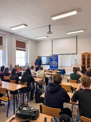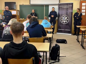 Przedstawiciele Komendy Powiatowej Policji w Goleniowie prowadzą spotkania informacyjne w lokalnych szkołach ponadpodstawowych, podczas których prezentują uczniom specyfikę służby w Policji oraz zachęcają do rozważenia kariery zawodowej w tej formacji.